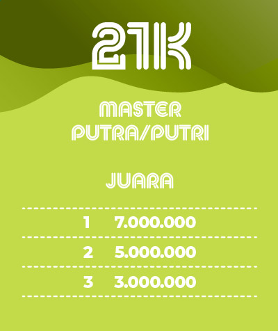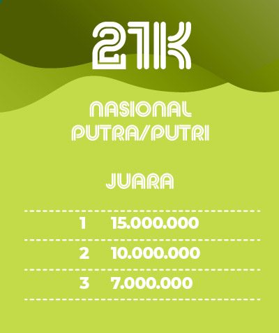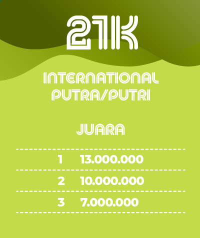 • 21K, terbuka bagi pelari perorangan Internasional, Nasional dan Master Nasional (berusia 40 tahun ke atas)
